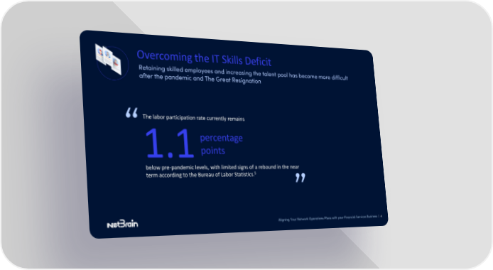 Overcoming the IT Skills Deficit Retaining skilled employees and increasing the talent pool has become more difficult after the pandemic and The Great Resignation The labor participation rate currently remains percentage 1.1points below pre-pandemic levels, with limited signs of a rebound in the near 5 term according to the Bureau of Labor Statistics. Aligning Your Network Operations Plans with your Financial Services Business | 4