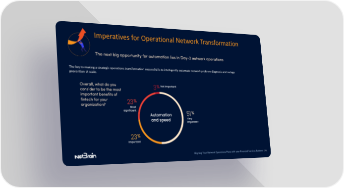 Imperatives for Operational Network Transformation The next big opportunity for automation lies in Day-2 network operations The key to making a strategic operations transformation successful is to intelligently automate network problem diagnosis and outage prevention at scale. Overall, what do you consider to be the most important benefits of fintech for your organization? Aligning Your Network Operations Plans with your Financial Services Business | 6
